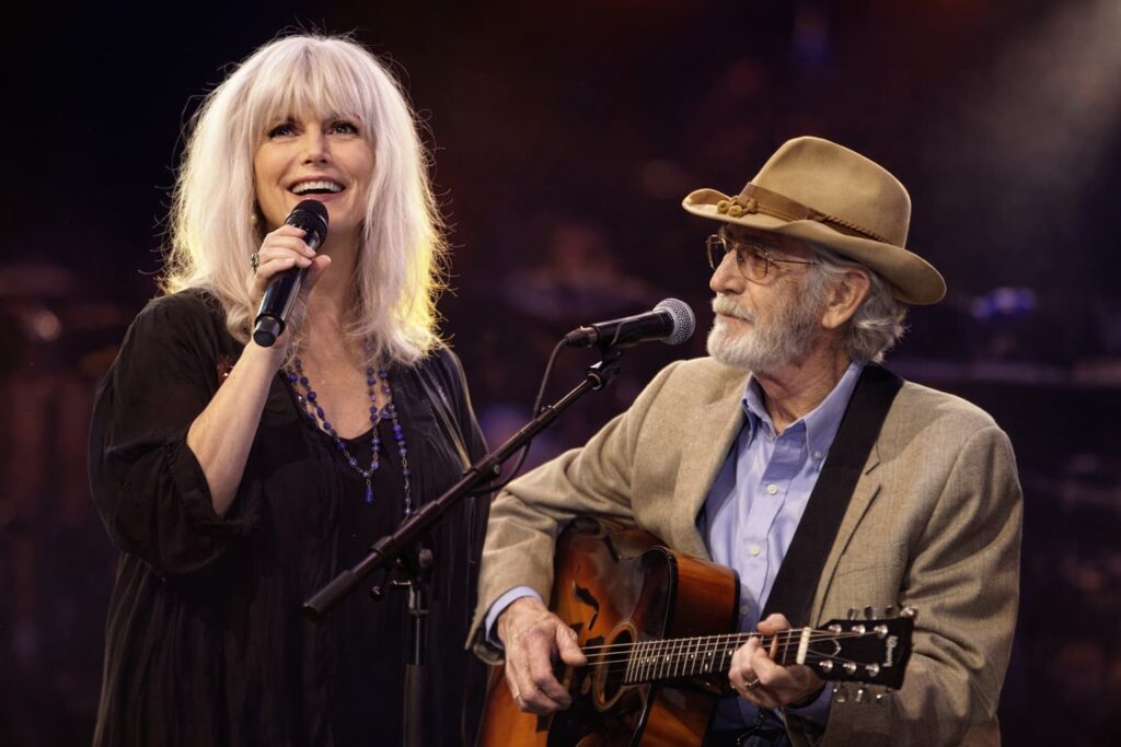 In the hands of Emmylou Harris, the line carries a crystalline tenderness. Her voice has always held a kind of Appalachian clarity, a timbre that feels both earthly and celestial. Don Williams, by contrast, brings his signature baritone calm, the same warm gravity that earned him the moniker “The Gentle Giant.” When they sing in harmony, their voices do not compete; they lean into one another. The arrangement is spare, built on acoustic guitar and subtle accompaniment, allowing silence to play as crucial a role as sound. Every pause feels intentional, as though the air itself is part of the composition.